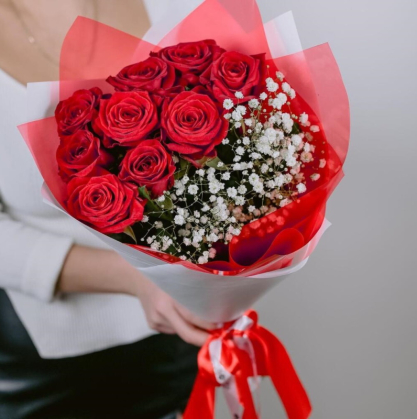 Букет из красных роз и гипсофилы | Купить в Копенгагене
